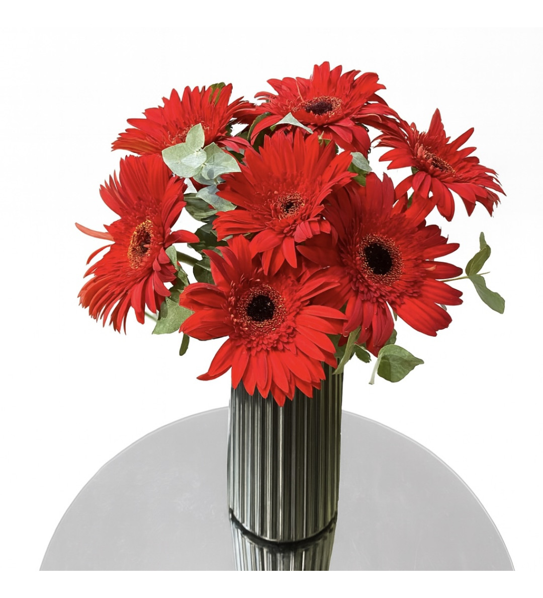 Ürün İçeriği: 7 adet kırmızı gerbera, yeşil yapraklar