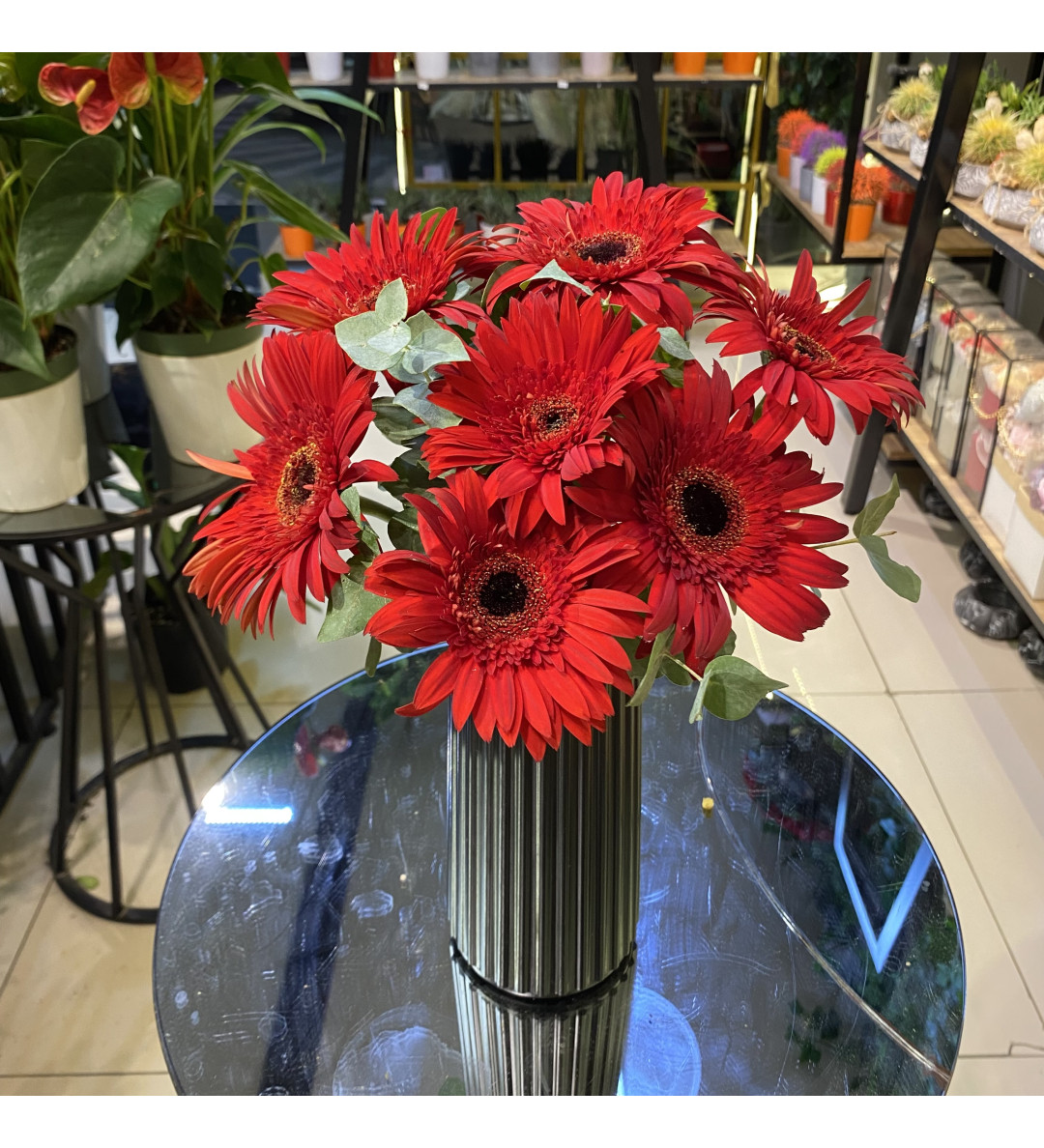 Aşkın, tutkunun ve enerjinin en canlı hali… 7 adet kırmızı gerberadan oluşan bu özel aranjman, şık siyah plastik vazo içerisinde özenle hazırlanmıştır. Kırmızının güçlü etkisi, yaşam alanlarınıza sıcaklık ve romantizm katarken, sevdiklerinize unutulmaz bir hediye alternatifi sunar.