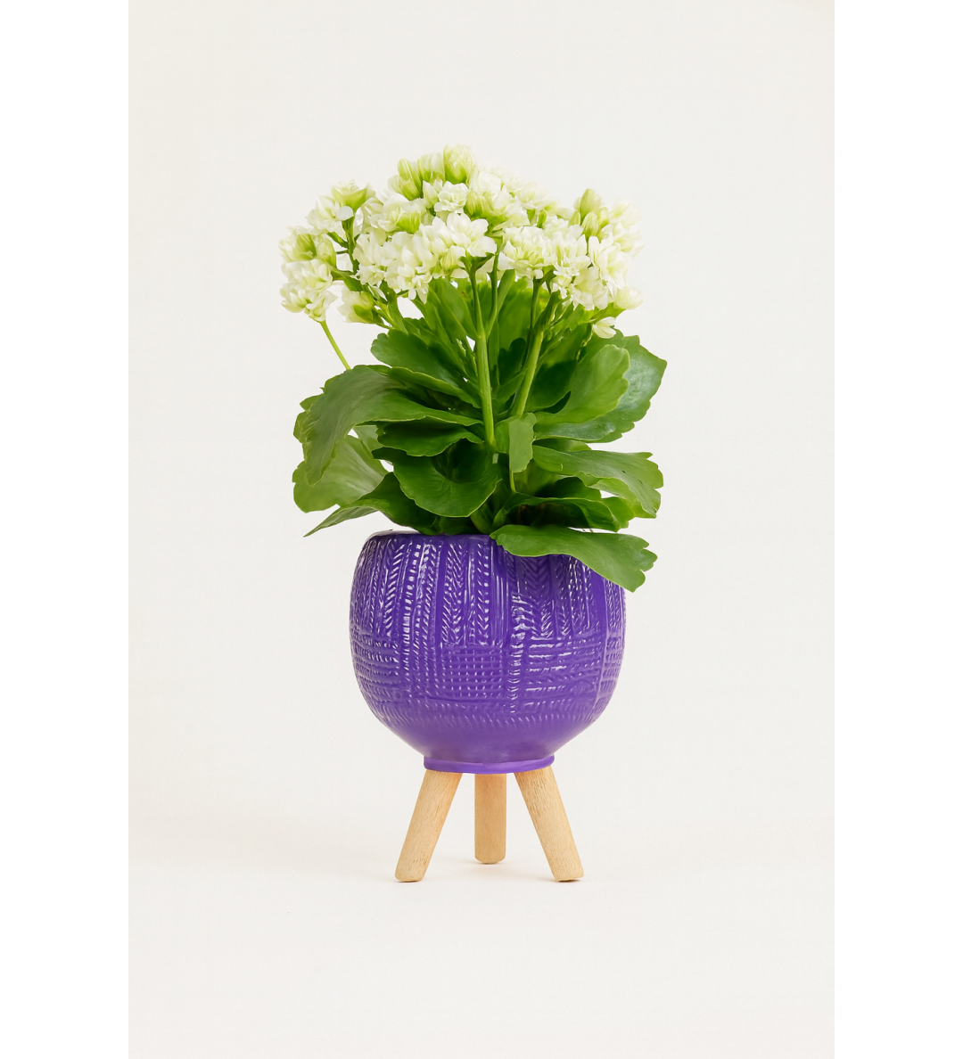Beyaz Kalanchoe Çiçeği (Mor Ayaklı Saksıda)