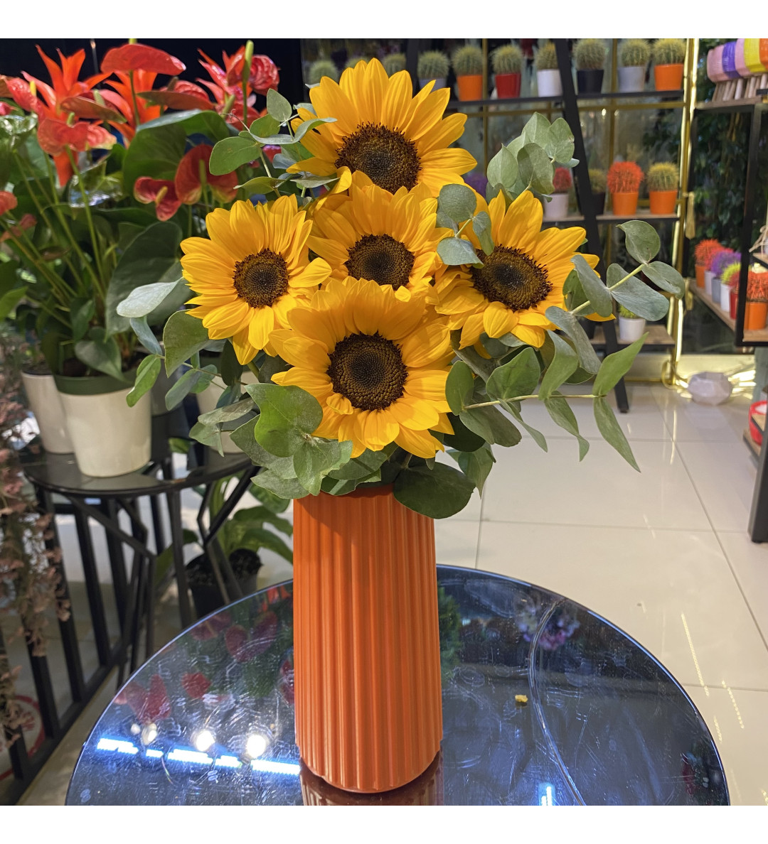 Turuncu Plastik Vazoda 5 Ayçiçeği
