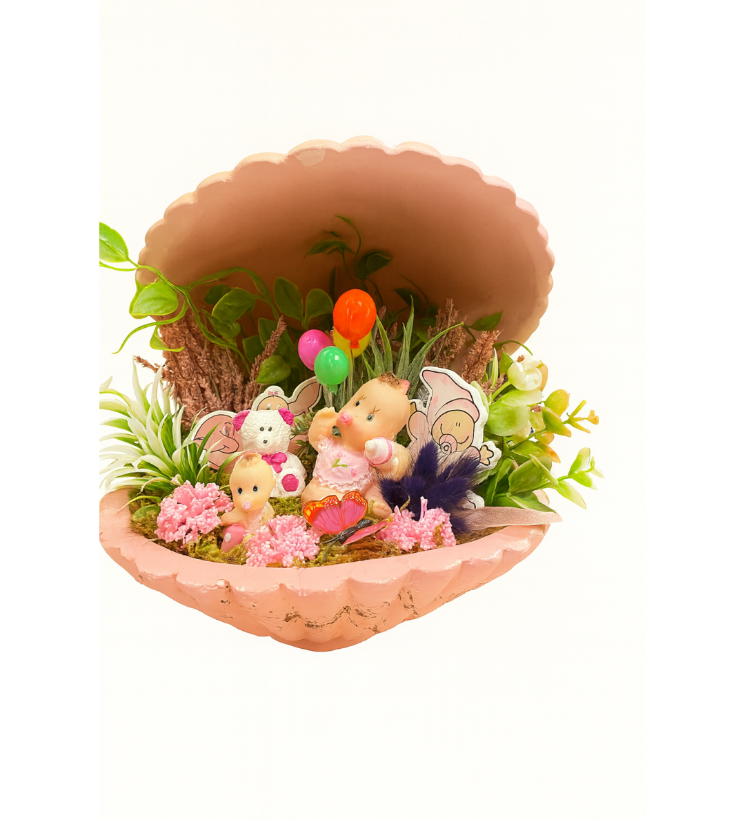 Hoşgeldin Bebek Teraryumu (Pembe Temalı İstiridye Saksı)